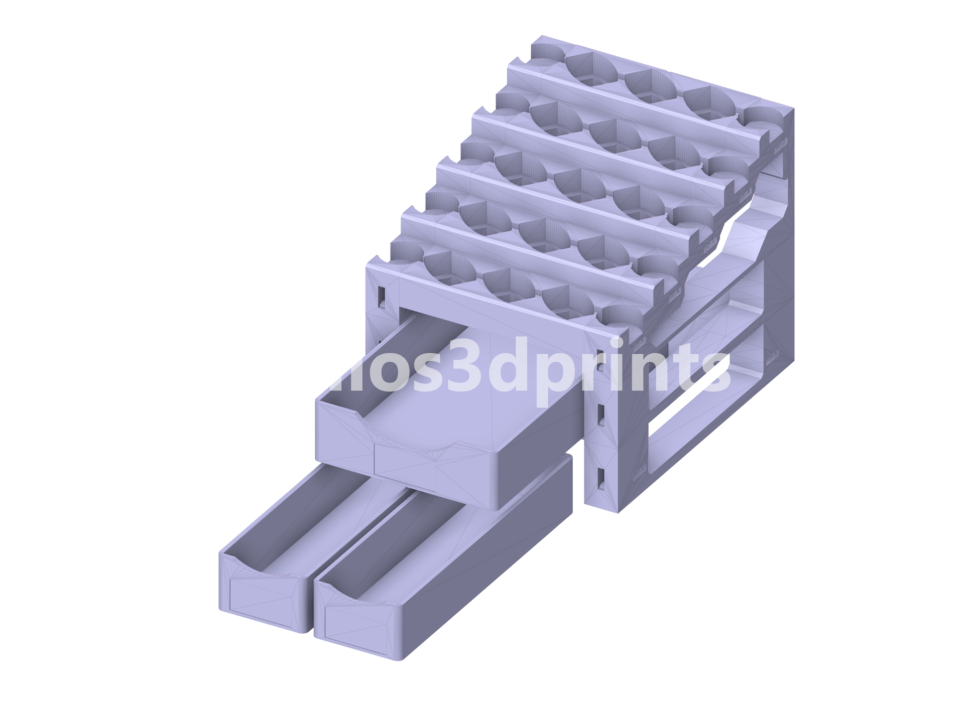 PaintPal Studio consists of stackable and configurable 3D printable storage racks that clip together using the popular OpenLOCK clipping system. Each core rack is made up of five paint pot modules that clip into the structural frames. The paint modules are designed both flip-top and dropper bottles and cover a wide range of popular brands. Best of all, the racks can be raised by attaching a pair of riser drawer frames which allow the original PaintPal Travel Hobby System trays to slide in and work as storage trays.