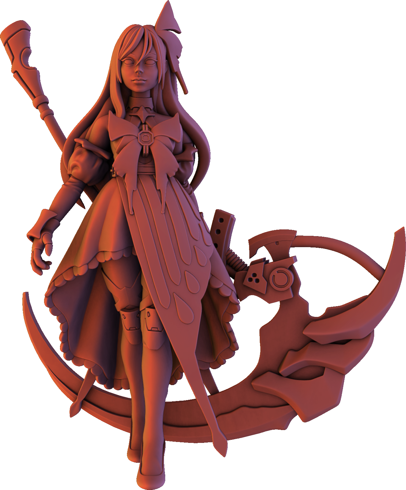 Concept art is on the left, miniature render is on the right.